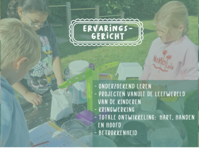 School maken we samen. We trekken zelf naar buiten en betrekken onze omgeving bij het leren. Ons dorp én onze wereld zijn ons speel- en leerdomein.